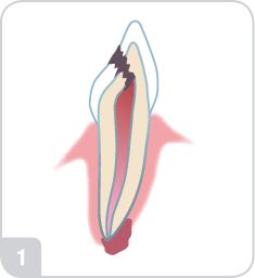 Djupt kariesangrepp har spridit sig till tandpulpan. Tandnerven är infekterad.
