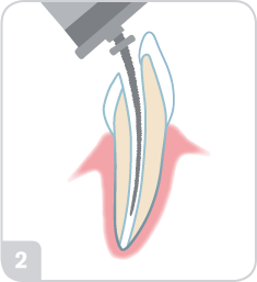 Infekterad pulpavävnad avlägsnas med en rensningsfil.